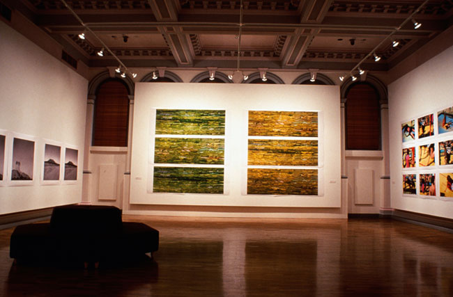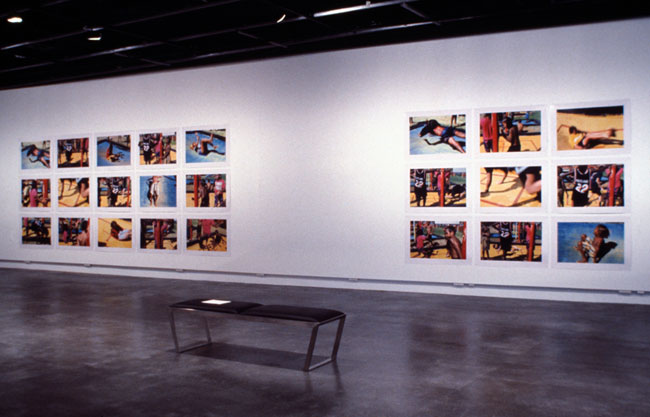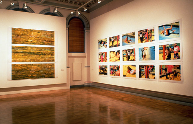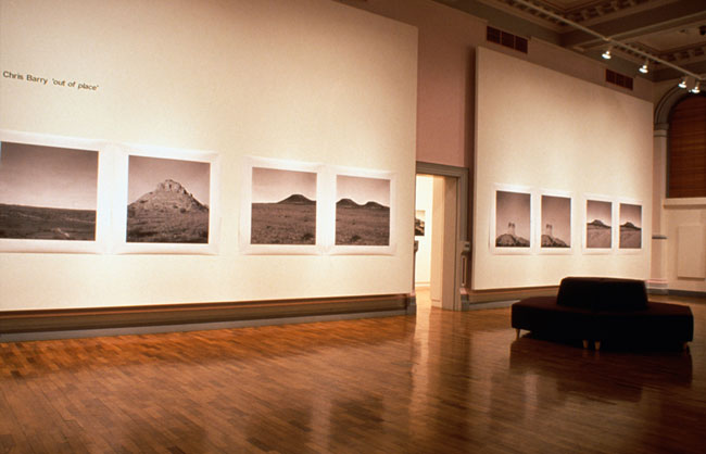 Out of Place comprises of three distinct interpellations about place: Pool, Stereoscopic Histories, and Summer Rains. Pool is a suite of 28 photographic prints (each print 78.0cm x 108.0cm) taken at the local Alice Springs municipal pool during the summer months of January - March 1999. Stereoscopic Histories is a series of 8 works or 4 diptychs each 108.0cm x 108.0cm in size. These works entertain the colonial impulse to name, describe, identify, and claim. Summer Rains is a suite of 12 large-scale photographic prints (or four epic works) each representing large tracts of country. Each work is made up of 3 panels (measuring 105.0cm x 250.0cm and 127.0cm x 250.0cm) or, combined, 315.0cm x 250.0cm approximately. This suite of work represents the cyclic nature of summer and is entitled, December, January, February, and March.