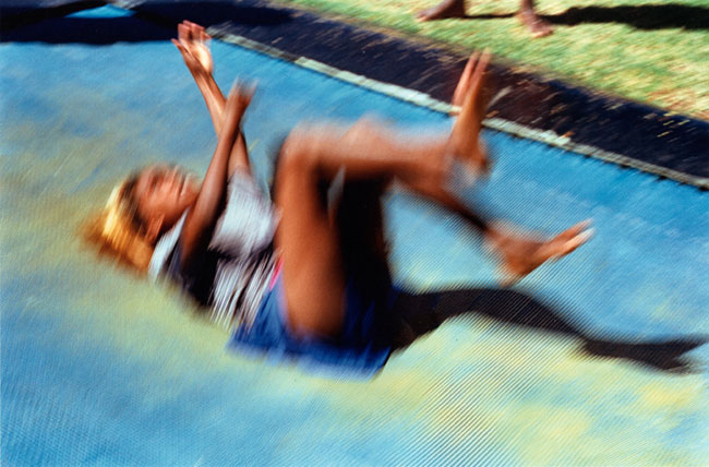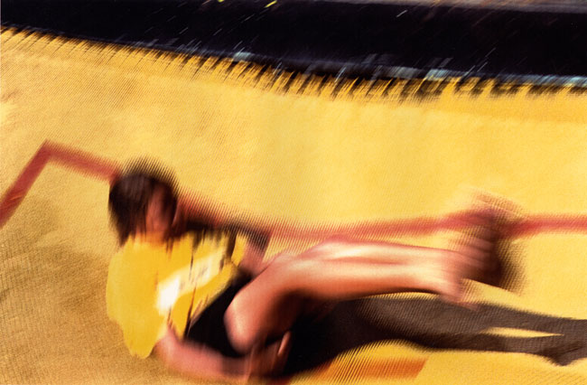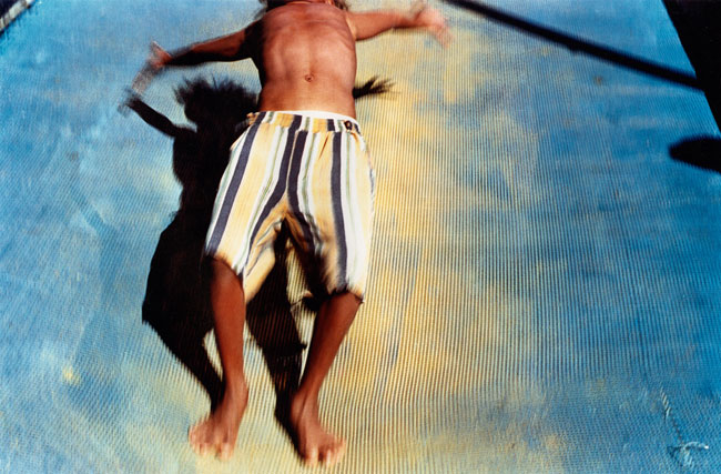 Pool is a suite of 28 photographic prints (each print 78.0cm x 108.0cm) taken at the local Alice Springs municipal pool during the summer months of January - March 1999. Pool celebrates the vibrancy and agency of Aboriginal life worlds, the currency and vitality of culture in situ. By using colour and rhythm, motion and stasis, pattern and repetition, identity politics are examined and performed through the physicality of bodies, shapes, and gravity. Their arrangement and re-arrangement, in motion or stilled, in-frame and out-of-frame, signify performative gestures of strength, tenacity, agility and resilience—those qualities associated with resistance and survival. The body becomes a contemporary palimpsest re-inscribing itself into place—claiming legitimacy, visibility, prominence and representation. The body as inscriptive surface, historical site-marker, and sensual proof, is re-written into space and time and situated within the specificity of location. A tacit narrative of place and people is told through a framework of physical presence, performative gesture, and the arrangement of colour and shape.